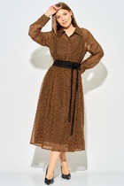 Платье из трикотажного полотна «кулирка» с набивным рисунком, отрезное по талии, с короткими втачными рукавами, горловиной V-образной формы, окантованной основным материалом и карманами в боковых швах. Полочка – с рельефами, выходящими из плечевых швов. Входы в карманы окантованы. Юбка – широкая, присборенная по шву стачивания с лифом и оборкой по низу.