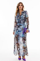 Платье в длине мини, рукав втачной, к низу клешёный. Лиф платья обработан рюшами