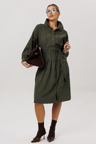 Платье в длине мини, выполнено из трикотажного полотна, который представляет собой ряд выпуклых вертикальных полос из «косичек». Верх платья обработан глубоким вырезом-лодочка и бретелями, имитирующими майку. Рукав расширяется к низу, по форме клеш. Платье хорошо тянется, идеально сядет н афигуру..