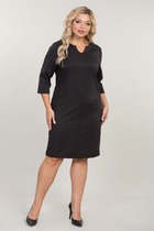 Платье женское трикотажное, свободное "оверсайз", со спущенной проймой и 3/4 рукавом, вырез горловины полукруглый с планкой, в боковых швах-карманы и разрез слева.