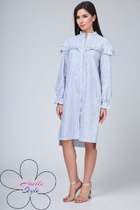 Платье женское полуприлегающего силуэта, выполнено из трикотажной ткани, с подрезом под линией груди и сборкой, с воротником, переходящим в капюшон на спинке в контрастном цвете, рукав втачной 3/4, украшение в комплекте. Длина платья по спинке 104 см.