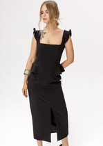 Платье женское полуприлегающего силуэта с  центрально- бортовой застежкой на петли и пуговицы, рукав втачной 3/ 4, талия, горловина и низ рукава с притачным довязом и функциональным карманом.