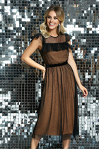 Фьюзоли – стильное платье А-силуэта из трикотажа "скреп-куба". Вырез горловины V-образный, декорирован обтачкой из ткани контрастного оттенка. Рукава втачные, 3/4. Низ рукавов обработан манжетами контрастного цвета. На груди – вытачки. Будьте неподражаемой вместе с "