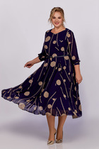 Платье с центральной застежкой на тесьму молния, отрезное по линии талии с широким втачным поясом на поясе обработаны декоративные молнии. Горловина круглая. Рукава реглан с плечевой вытачкой.