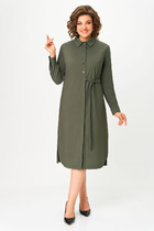 Платье «А» образного силуэта с рельефными швами по переду и спинке. Горловина круглая с цельновыкроенной стойкой. Застежка на тесьму молния в центральном шве спинки. Рукава втачные, со сборкой по низу, на узком манжете с застежкой на петлю и пуговицу.
