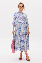 Лиф из плательной ткани, юбка из шифона. Платье с запахом, горловина с воротником пиджачного типа с отложными лацканами. Рукава втачные, длина 3/4.