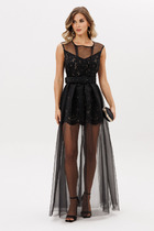 27.03 Vilatte Длинное прямое платье с разрезами из 100% хлопка D42.124 черный