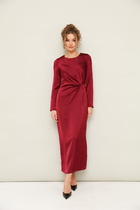 Платье миди в графичном дизайне в свободном А-силуэте, плавно расширяющийся от груди к низу, обеспечивающий максимальный комфорт и непринужденную элегантность. Классический V-образный вырез, который визуально удлиняет шею. Рукава и часть лифа (верхняя внешняя часть плеч и рук) выполнены из ткани с классическим черно-белым принтом "гусиная лапка". Центральная часть лифа спереди оформлена двумя крупными, контрастными черными треугольными вставками, которые сходятся к вершине V-образного выреза. Эти вставки создают четкий, динамичный геометрический рисунок. Рукава длинные, втачные, из ткани "гусиная лапка", без дополнительных декоративных элементов на манжетах. Спинка платья безцентрального шва с выточками для лучшего прилегания модели. В платье имеются боковые карманы для большего удобства. Длина рукава 62 см длина платья 115 см.