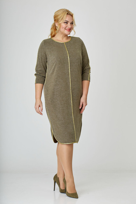 Платье женское,полуприлегающего силуэта. По переду средний шов,нагрудные вытачки, в боковых швах обработаны карманы. Рукав втачной одношовный. Низ платья закруглённый. В качестве отделки используется шнур:на горловине,плечевых,проймах, боковых и рукавах.