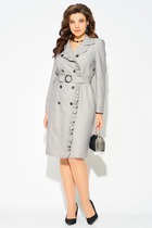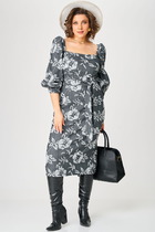 Платье женское свободного кроя расклешенное к низу. Спинка со средним швом. Перед с ассиметричным разрезом подиагонали. Правая часть переда из отделочной ткани с печатью в виде бабочек. Горловина округлой формы. По бокам внизу обработаны кулисы с завязками. Платье со спущенной линией плеча.
