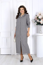 Платье прилегающего силуэта, длинной ниже линии колена. Платье ассиметричной формы.