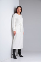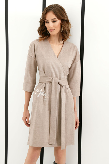 Платье женское полуприлегающего силуэта из платьево-костюмной ткани с двубортной застежкой на пришивных кнопках. По переду обработаны встречные складки, в боковых швах – карманы. Спинка со средним швом и встречными складками. Рукава втачные, одношовные. Платье с отлетным поясом из основной ткани.
