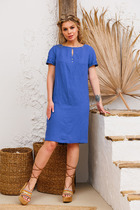 Платье из трикотажного полотна прилегающего силуэта. В среднем шве спинки обработана потайная молния и снизу обработана шлица. Верх платья выполнен в виде задрапированного элемента с запахом спереди.