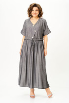 Платье из костюмно-плательной ткани прилегающего силуэта. Обработана потайная молния в среднем шве спинки. Внизу по спинке обработана шлица. Верх выполнен из мягкой сетки, спереди вырез (декольте), горловина спинки выполнена в виде капельки с навесной петлей.