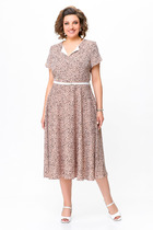 Платье Swallow 742 бежевый+принт черные камни