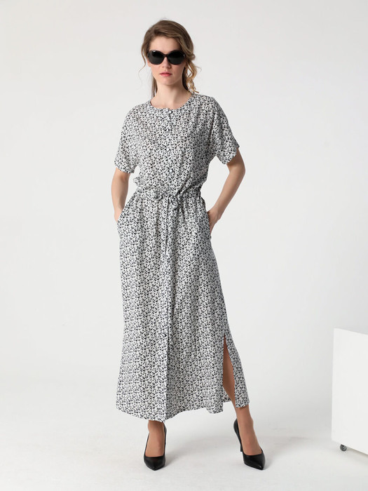 Длинное платье из струящейся вискозы прямого силуэта с круглым вырезом  и цельнокроеными короткими рукавами - это стильный предмет гардероба каждой женщины. Застежка - на петли и пуговицы. Удобные карманы расположены в боковых швах. Линию талии подчеркивает кулиска с эластичной тесьмой по спинке. Фантазируйте с обувью и аксессуарами, и это лаконичное по стилю  платье-рубашка позволит Вам превосходно выглядеть как на прогулке, на отдыхе, так и в офисе.
