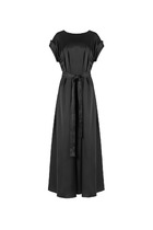 Платье женское, расширенное книзу, длиной макси, без рукавов. Горловина с V-образным вырезом по переду и спинке. Спинка со средним швом. На бретелях съемные банты.