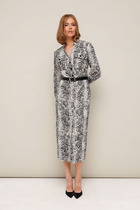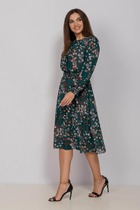 Красивое платье приталенного силуэта. Округлая горловина на внутренней обтачке, по спинке разрез - капелька с застежкой на петлю и пуговицу. Втачной рукав 3/4, оканчивается притачной манжетой. Модель отрезная по линии талии. По талии проложена эластичная резинка, что дополнительно подчеркнет Ваш силуэт. Пояс - кушак из основного материала в комплекте.