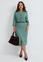 Платье выполнено из шифона с принтом. Платье отрезное по линии талии. Воротник рубашечного типа. Застежка спереди на пуговицы на планке. Рукав втачной, на манжете. Лиф и юбка платья на подкладке из тонкого атласа.  В комплект входит съемный ремень из основной ткани с обтяжной пряжкой.