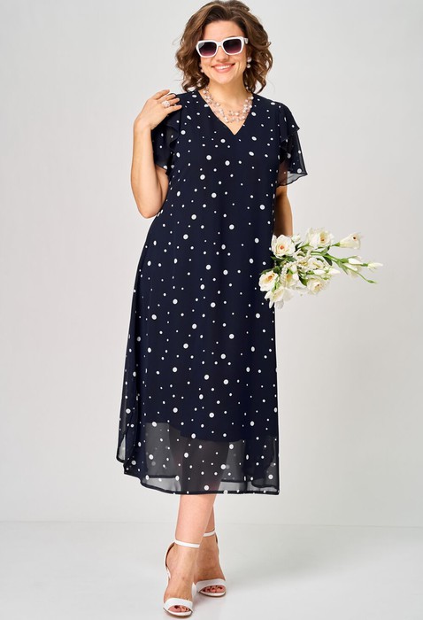 Платье женское стильное шикарное нарядно повседневное из хорошего красивого шифона на подкладе. Вырез горловины V-образны на обтачке, что создает комфорт в носке. Рукав втачной состоит из двух воланов, что придает изделию одновременно элегантность и стиль. По спинке вырез в виде капельки на застежке, что создает комфорт. Низ платья фигурный, в боковых швах обработаны закругленные разрезы. Все элементы изделия создают шик, удобство, легкость и неповториность. Декором служит дизайн самой ткани.