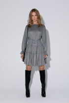 Платье женское повседневное прямого силуэта с фигурным низом. Выполнено из однотонного хлопка в сочетании с отделоной тканью с анималистичным принтом. Вырез горловины V-образного типа, рукав втачной со складками по низу с резинкой на фиксаторе, по полочке платья накладные карманы и два разреза. Горловина спинки с фигурным вырезом и пряжкой. Декором служат элементы из отделочной ткани.