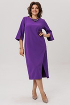 Платье женское нарядно-повседневное полуприлегающего силэта до талии расширенное к низу. Платье отрезное по талии на трикотажной подкладке, выполнено из креп-шифона. Вырез горловины V-образный обработан обтачкой, по горловине полочки и спинки двойные воланы. Рукав втачной по низу на резинке. По юбке небольшие складки. В боковых швах обработаны разрезы, низ фигурный. Декором платья служит съемный пояс из основной ткани и рюши по горловине платья.