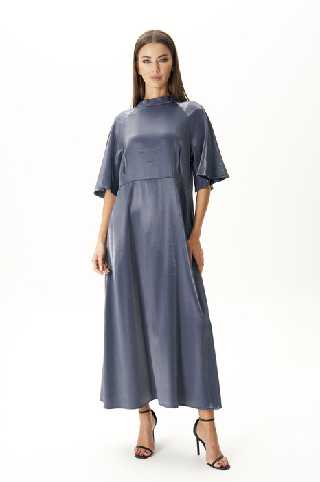 Платье из лёгкой формоустойчивой ткани с эффектом серебристого напыления А-образной формы имеет членение фигурной формы чуть выше линии талии, подходящее абсолютно для всех типов фигур.