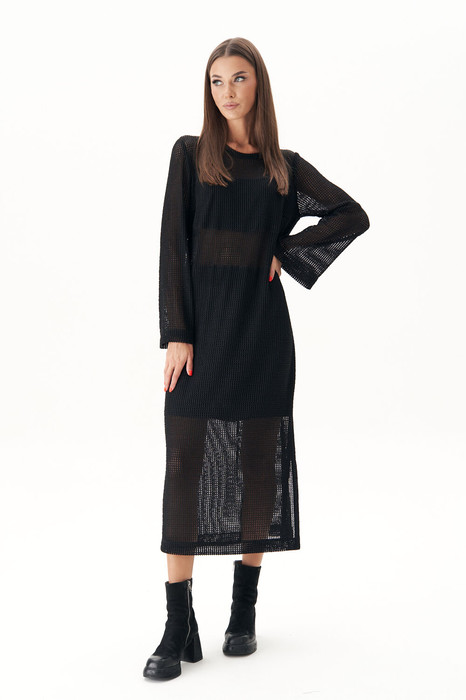 Выполнено из трикотажной фактурной сетки с металлическим напылением - такое платье станет отличной альтернативой вязанным и кружевным нарядам - лёгкое, струящееся, соблазнительное.