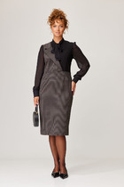 Главный акцент — асимметричный разрез, декорированный сеткой с бахромой ручной работы, придаёт модели индивидуальность и лёгкий артистичный характер.