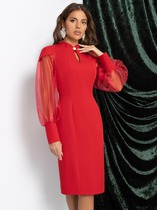 Платье из гладкого атласного полотна свободного рубашечного покроя. Модель выполнена с мягкой сборкой по горловине, застёжкой на пуговицы и объёмными рукавами на манжете. Акцентом выступают эффектные серебристые пояса, подчёркивающие талию и добавляющие образу современный, элегантный штрих. Ideal для деловых встреч, ужинов и особых выходов.