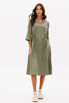 Платье прямого силуэта из бархата. В боковом шве разрез. Рукав втачной одношовный. По спинке застежка капелька на петлю и пуговицу. Длина платья - 136 см, длина рукава - 66 см.