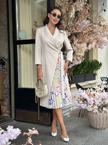 Платье Swallow 742 бежевый+принт черные камни