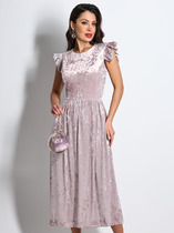 Летнее платье А - силуэта. Округлая горловина на внутренней обтачке. По спинке застежка на потайную молнию. В боковых швах функциональные карманы. Низ оформлен притачным воланом.
