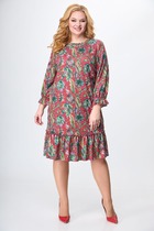 Платье женское полуприлегающего силуэта без подкладки из натуральной ткани со втачными рукавами и V-образным вырезом горловины. По переду платья декоративная планка, в боком шве застежка-молния.