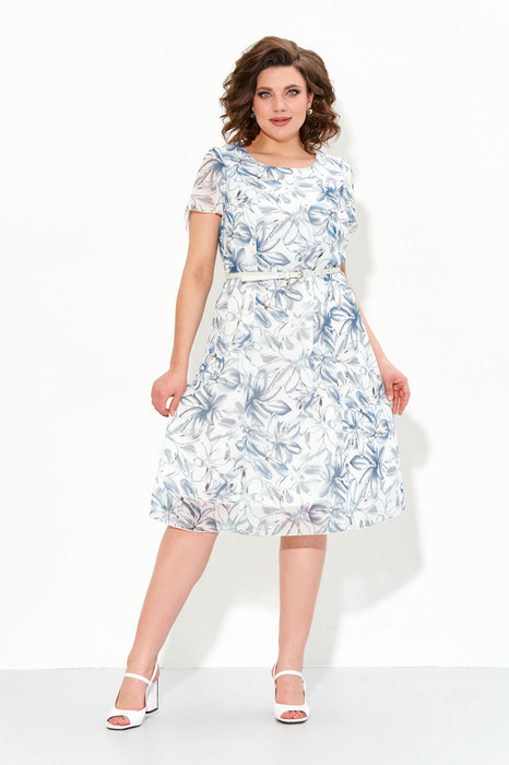 Платье женское А-силуэта из шифона на подкладке из непросвечивающегося крепа средней плотности со втачными рукавами и круглым вырезом горловины. В комплекте съемный пояс.                                                        Уход за изделиями из шифона: