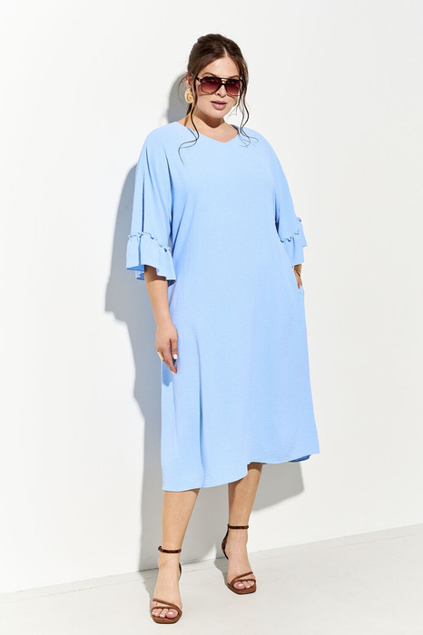 Женское платье свободного силуэта выполнено из легкой плательной вискозы. Рукава цельнокроеные с манжетами на сборке; в боковых швах карманы; горловина V- образной формы. Платье  полностью соответствует  заявленному размеру. Пожалуйста, пользуйтесь таблицей обмеров готового изделия.