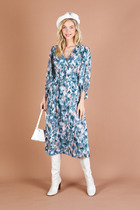 Платье женское прямого силуэта без подкладки из трикотажной ткани длиной до середины икры. Передняя часть платья со средним швом. По левой половинке переда внизу платья пришит волан из ткани – компаньона. По правой половинке переда настрочен нагрудный карман из ткани – компаньона с декоративными элементами. В боковых швах платья функциональные карманы. Спинка платья со средним швом, в котором расположена застежка – «молния». По низу левой половинки спинки пришит волан из ткани – компаньона. Горловина имеет округлую форму. Линия плеча спущена. Рукав выполнен из ткани – компаньона со сборкой вверху рукава и резинкой по низу рукава.
