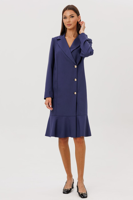 Элегантное платье-жакет с двубортной застежкой и лаконичным воланом.