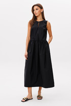 Платье-сарафан без рукавов. Пройма обработана кантом внутрь с отстрочкой.
