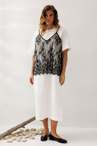 Стильное платье-тандем в стиле оверсайз с ажурной майкой накидкой.