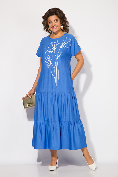 Роскошное удлиненное платье, станет настоящим украшением вашего весенне-летнего гардероба. Идеально подойдет как для летних вечеринок, так и для особых случаев, таких как выпускной, день рождения или свадьба. Платье выполнено из вискозно-штапельной ткани. Модель свободного силуэта, отрезная чуть ниже талии на 2 яруса в сборку. Платье с округлым вырезом горловины и спущенным цельнокроеным рукавом. В боковых швах предусмотрены карманы. Платье с эффектной печатью накатом по полочке.