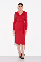 Платье свободного силуэта. По переду платья нагрудные вытачки. Горловина округлой формы, обработана обтачкой. Рукав втачной, собран на пату с пуговицей. Имеется съемный пояс из основной ткани.