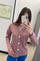 Платье умеренного объёма со спущенной линией плеча длиной ниже колена. Застёжка по переду на петли и пуговицы переходящая в разрез. Воротник отложной. По талии съёмный эластичный пояс.
