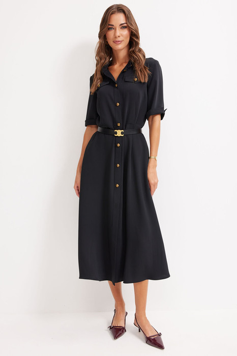 полуприлегающего силуэта. Воротник стояче-отложной с застежкой по центру на петли и пуговицы. Рукав втачной, длиной до локтя, по