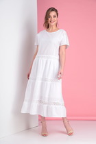 Летнее платье длины миди оригинального кроя. Изделие выполнено из натуральной хлопковой ткани. Лиф и спинка отрезные. Вырез горловины по переду круглый, по спинке — завязка из обтачных деталей спинки. Спинка открытая. Платье без рукава, низ платья — притачная юбка со сборкой, по спинке на резинке. Имеется два кармана в боковых швах. Платье может сочетаться как с кедами, босоножками, так и туфлями. Данная модель отличное решение для будней и для торжеств. Длина платья 123 (± 1 см). Изделие подойдет на рост 170 см.