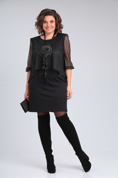 Нарядное двухслойное платье, прекрасно подчеркнет ваши достоинства, спрятав недостатки. Платье подойдет для любых торжеств. Нижнее платье выполнено из средней плотности однотонного трикотажа (водолаза), не светится, поверх которого укороченная сетка с люрексом. Нижнее платье длиной до колена, прямого силуэта, округлая горловина. Верх сетки по низу окантован, имеет округлую горловину, слегка расклешен, что придает изделию аккуратную сборку, рукав 3/4, низ рукава на эластичной резинке. Верхняя часть платья несъемная. Украшением платья служит брошка с регулируемой длиной, которая идет в комплекте. Платье прекрасно сочетается как с классическими туфлями, так и с сапогами. Длина нижнего платья по спинке 95 см +-1 см, длина верхнего платья по переду 37см, по спинке 69см, длина рукава от плечевого шва 48 см +-1 см. Изделие подойдет на рост 170 см.