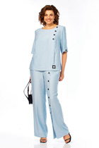 Ткань с добавлением льна дышит, не перегревает и комфортна даже в жару. Крупная вертикальная полоска визуально вытягивает силуэт и делает фигуру стройнее.