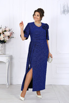 Эффектное женское платье, полу-прилегающего силуэта, выполнено из плиссированной ткани, на трикотажной подкладке. Лиф платья отрезной по линии талии, горловина округлой формы, на обтачке, также на горловине обработаны втачные планки из атласа в тон и декорированы стразами. По линии горловины выполнена вставка из сетки, что придает платье еще больше эффектности, по линии талии втачной пояс из основной ткани, декорирован стразами. Юбка присборена по линии талии и расклешена к низу, спинка отрезная по линии талии, со средним швом и вытачками. Рукав втачной, выполнен з основной ткани, укороченный. Стильное платье, то, что надо для торжественного мероприятия!