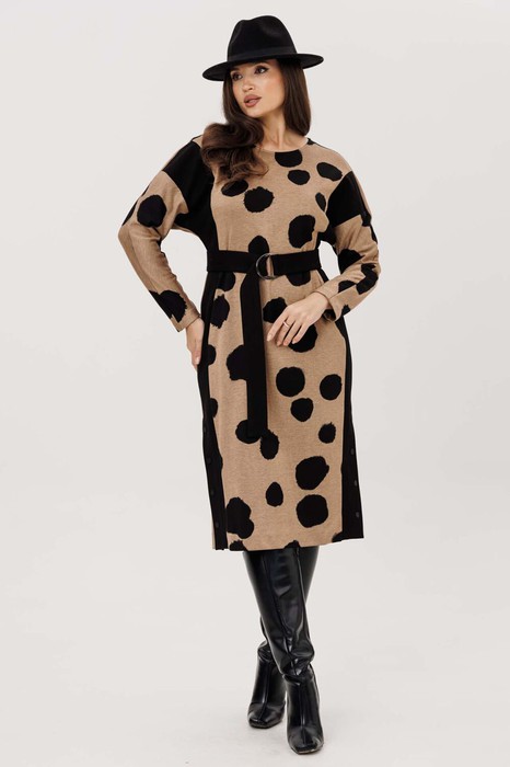 Платье MisLana 1238 бежевый с черными кругами