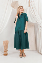Элегантное платье-футляр, выполненное из плотной плательной ткани на подкладке. Дизайн акцентирован декоративной бейкой с жемчужным оформлением на горловине и манжетах рукавов — технически точная обработка краев, обеспечивающая долговечность и эстетику. Центральная деталь — пуговица-застежка на горловине, формирующая изысканный вырез-капель с эффектом глубины.